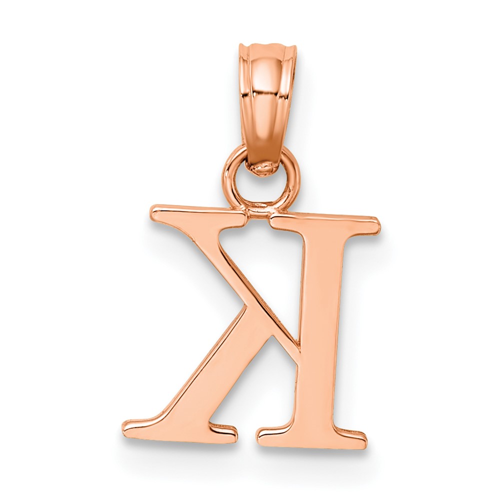 14K Rose Gold Polished Block Letter K Initial Pendant