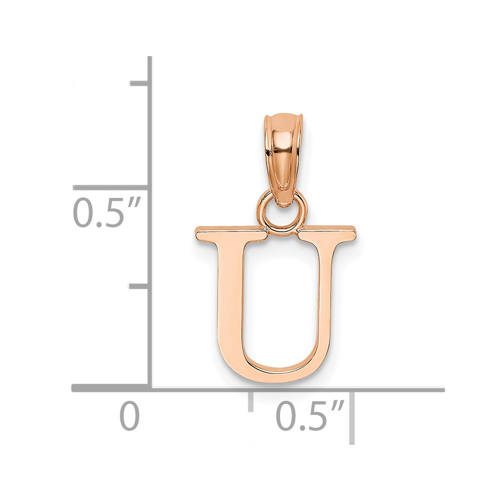 14K Rose Gold Polished Block Letter U Initial Pendant