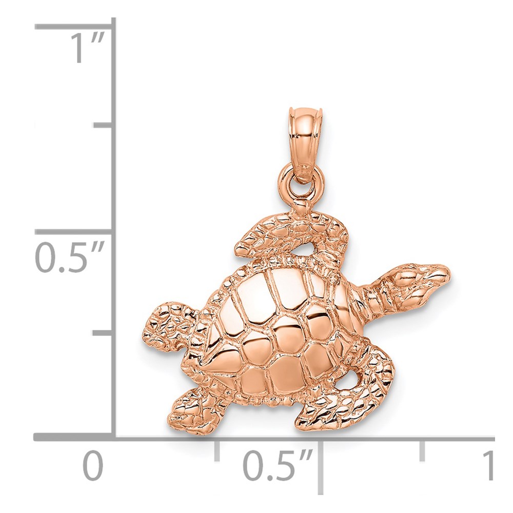 14k Rose Gold Textured Sea Turtle Charm