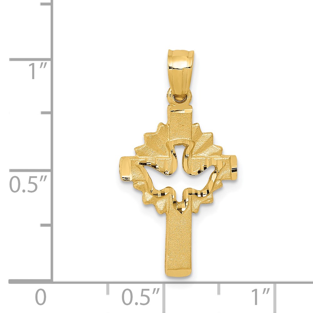 14k Satin Diamond-cut Dove Cross Charm