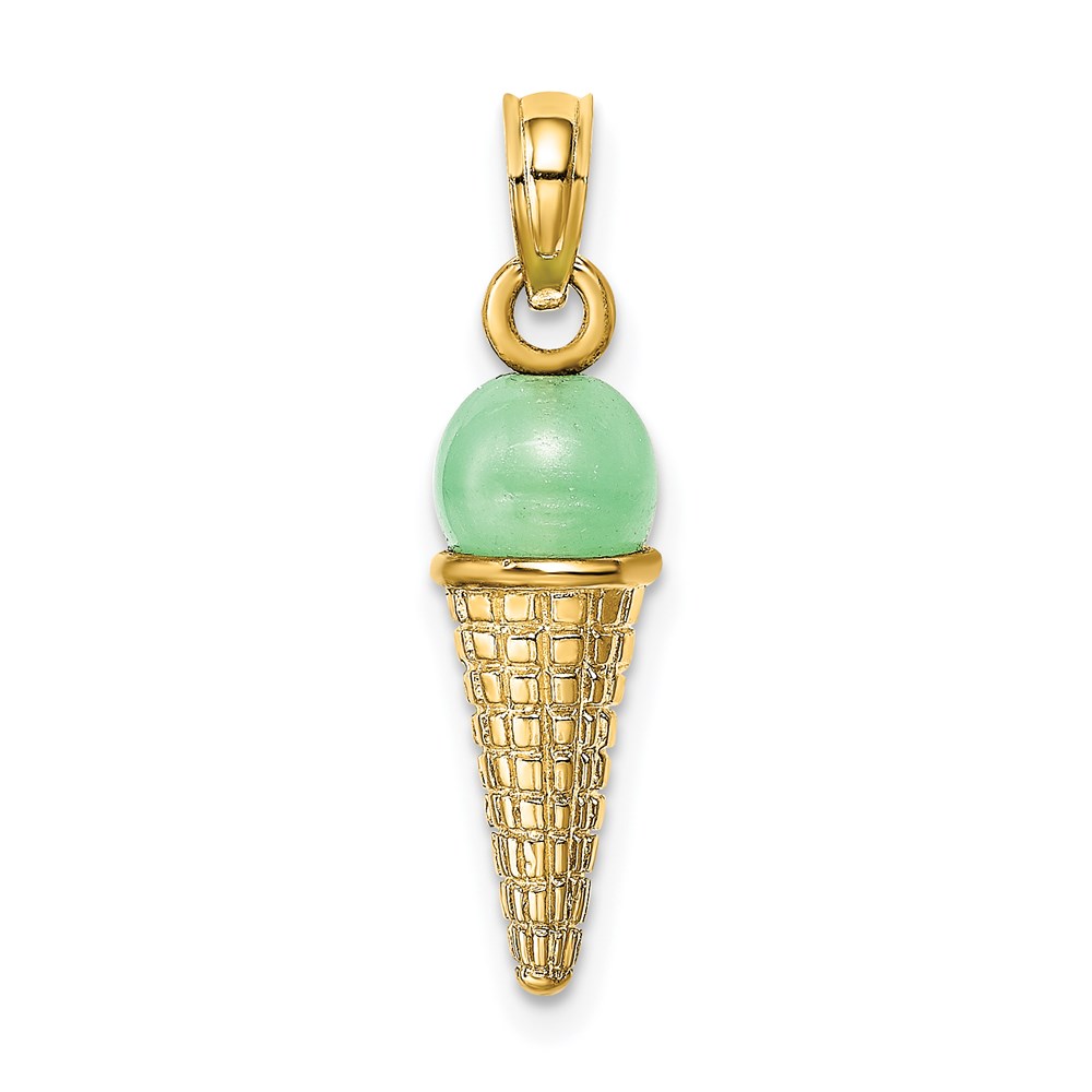 14K Satin Polished 3-D Green Bead Ice Cream Cone Pendant