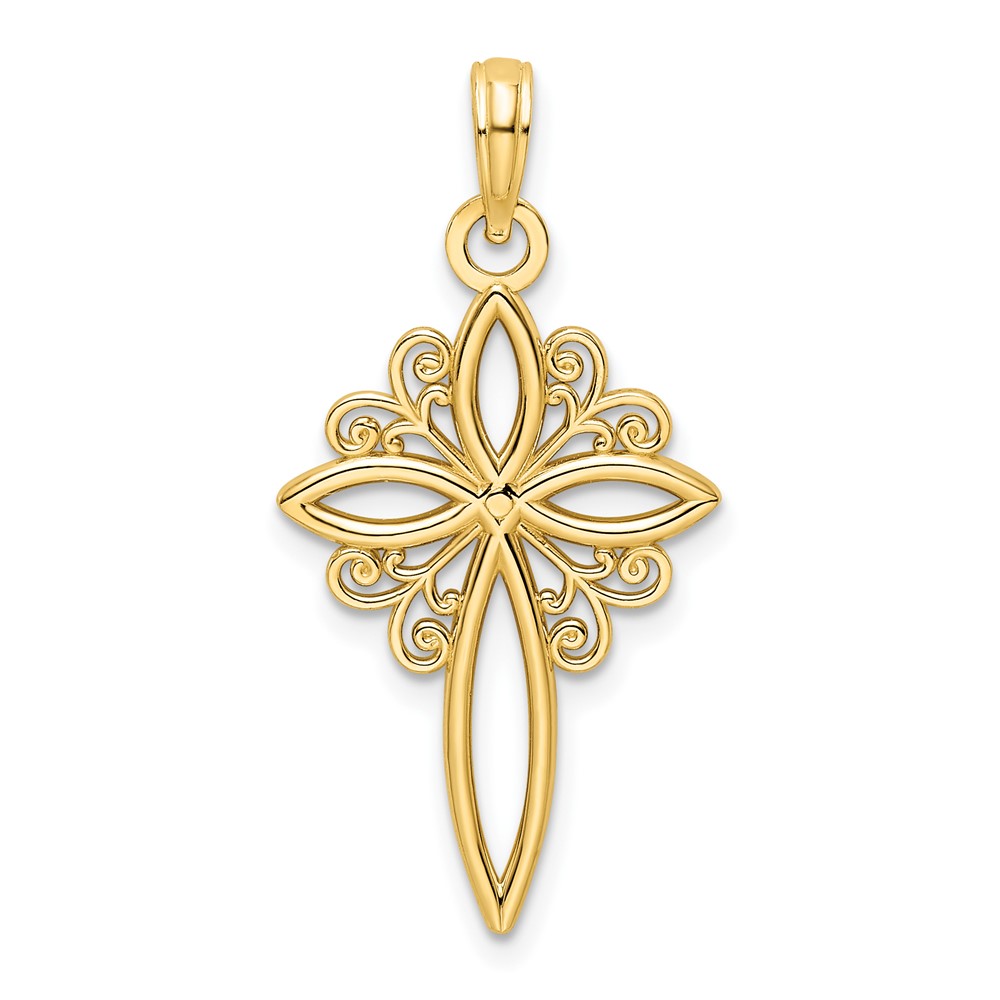14K Scroll Design Polished Cross Pendant