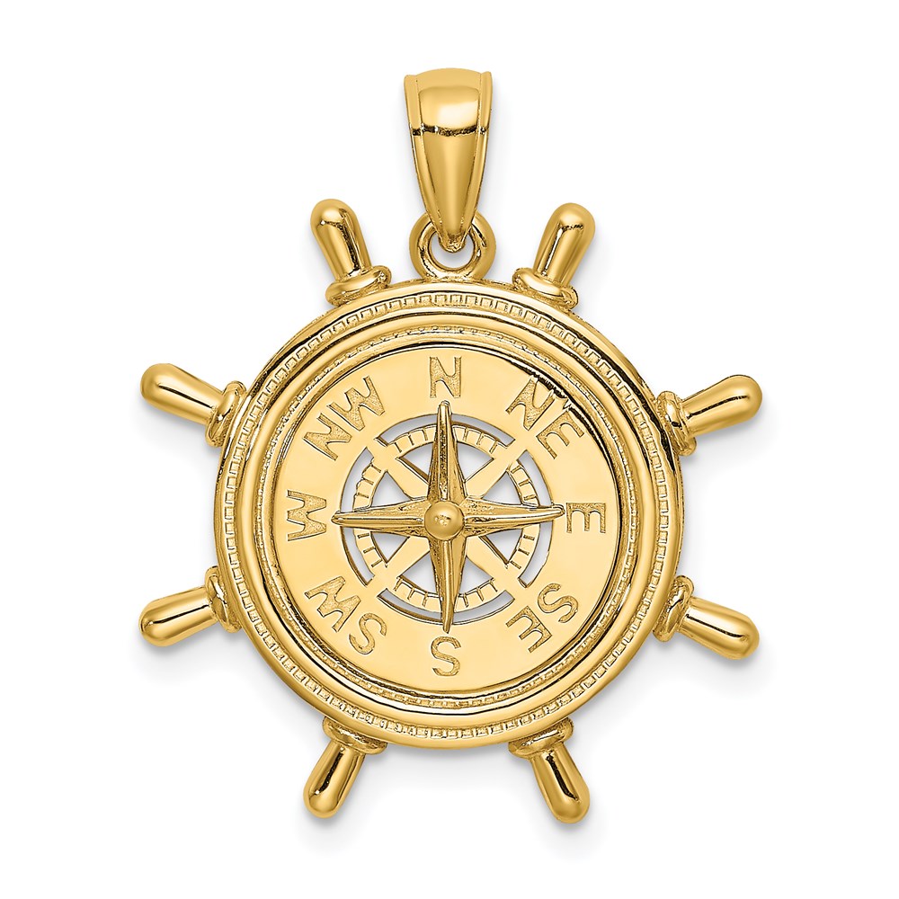14K Ships Wheel with Nautical Compass Charm