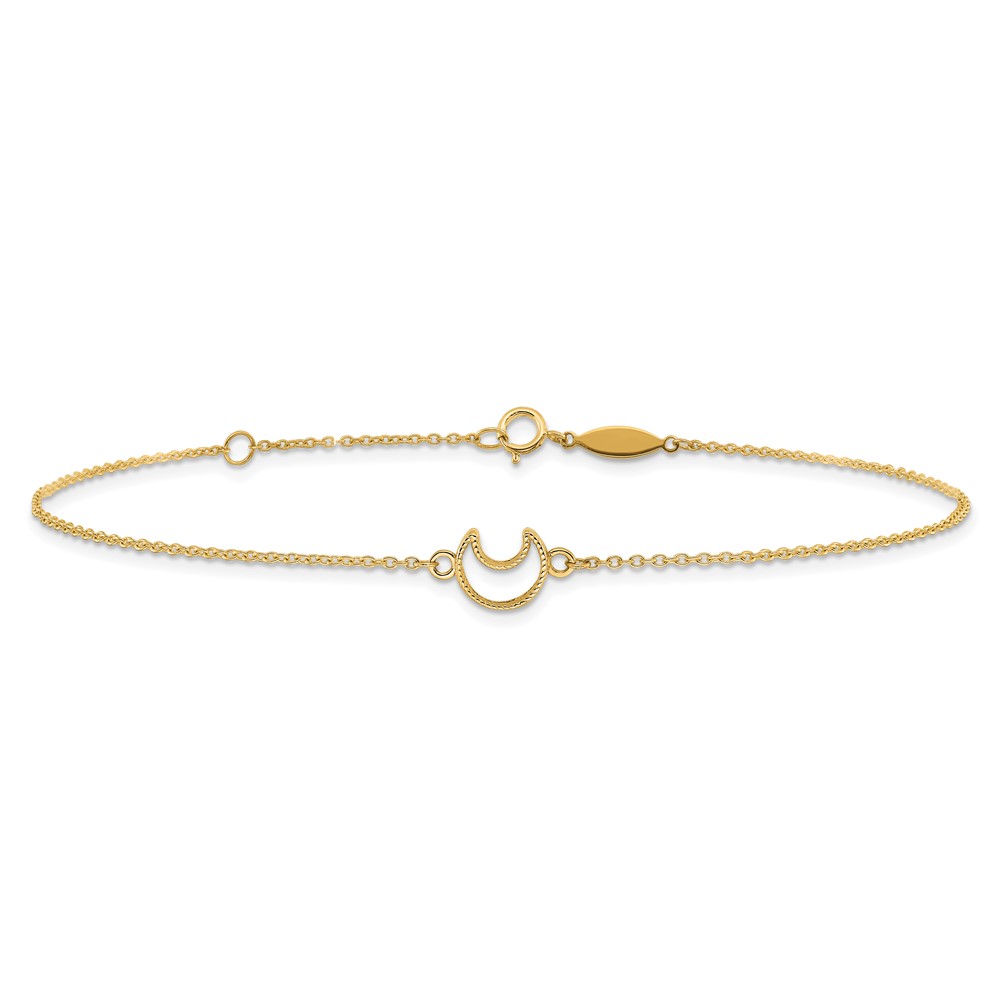 14K Textured and Polished Crescent Moon Plus Extender – Total Anklet