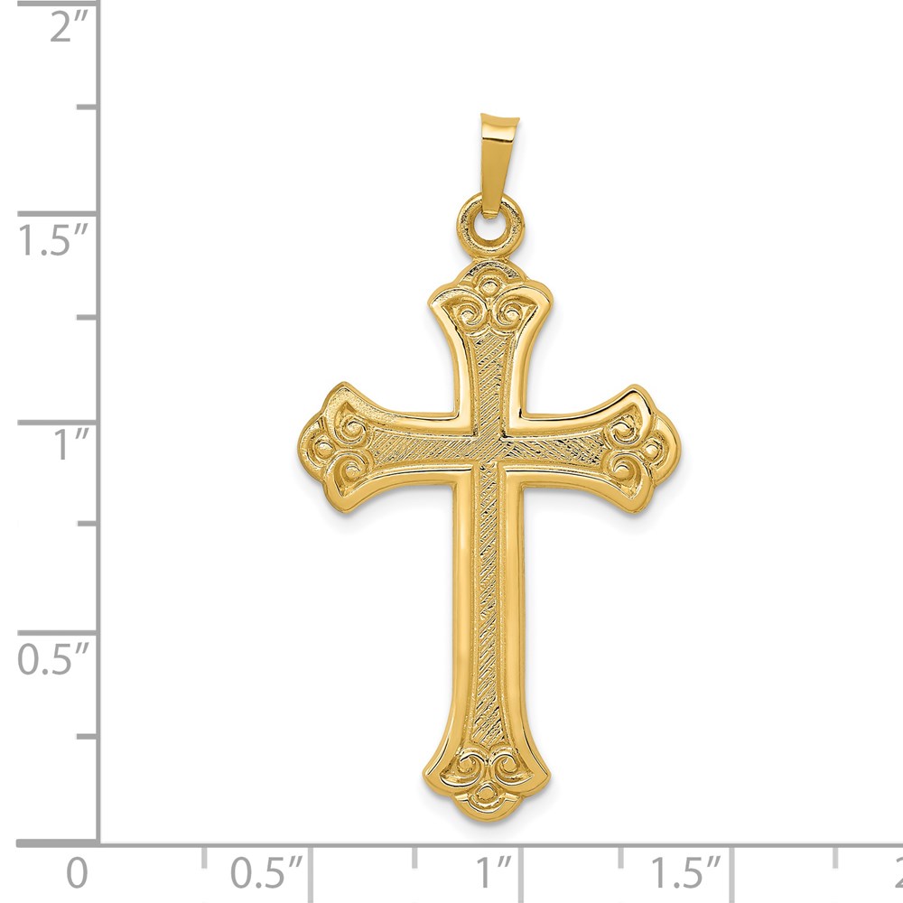 14k Textured and Polished Fleur de lis Cross Pendant