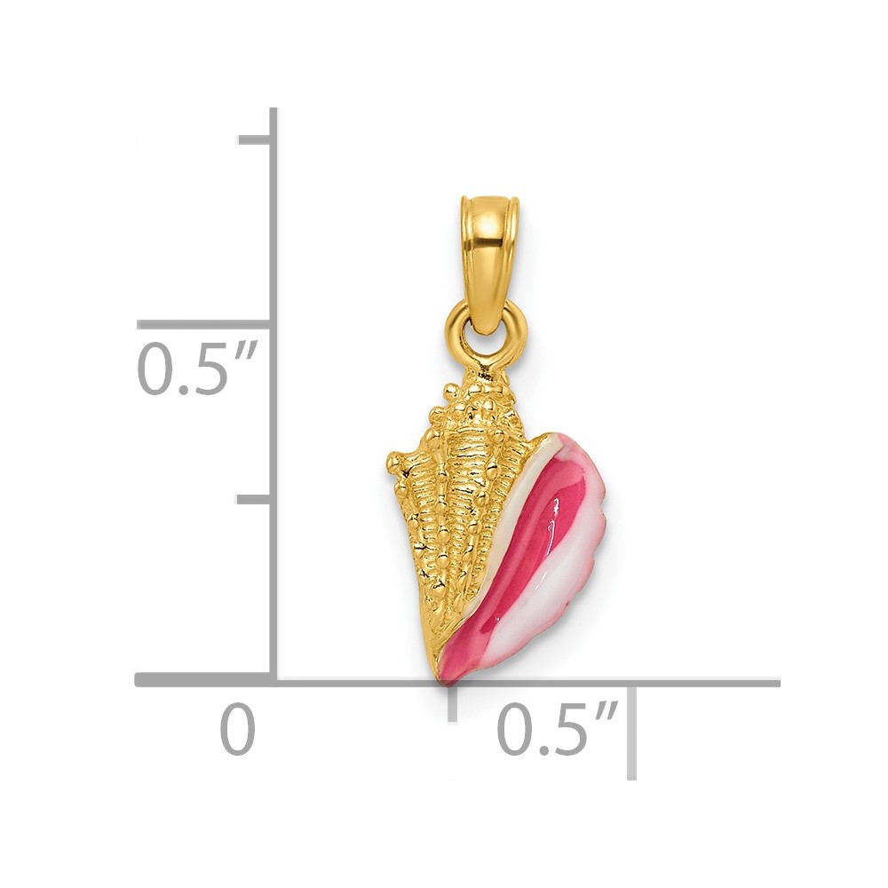 10k Polished 3-Dimensional Pink & White Enameled Conch Shell Pendant
