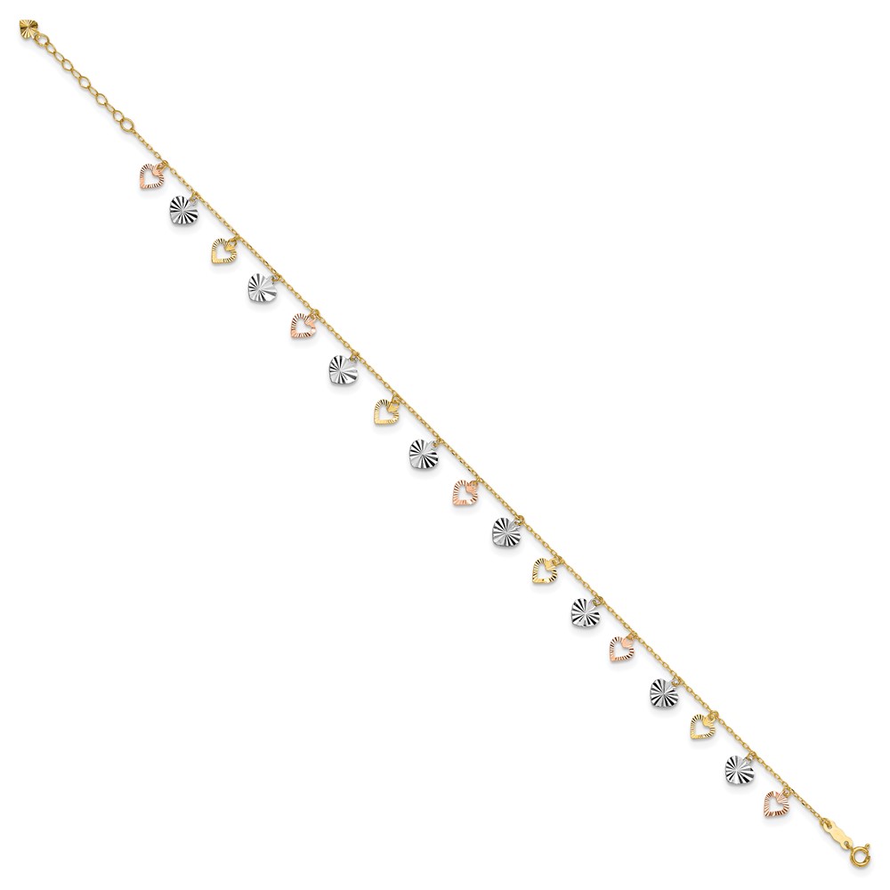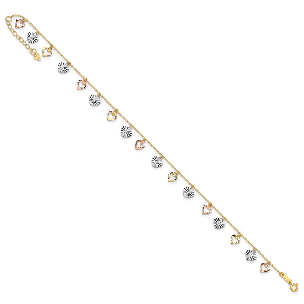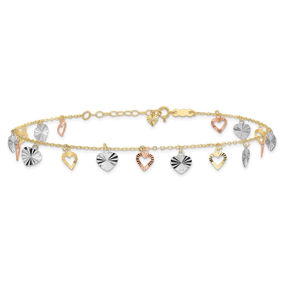 14K Tri-Color Dangle Hearts Plus Extender – Total Anklet