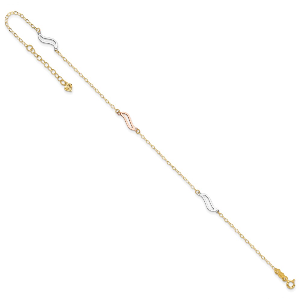 14K Tri-color Open Wavy Links 3-Station Plus Extender – Total Anklet