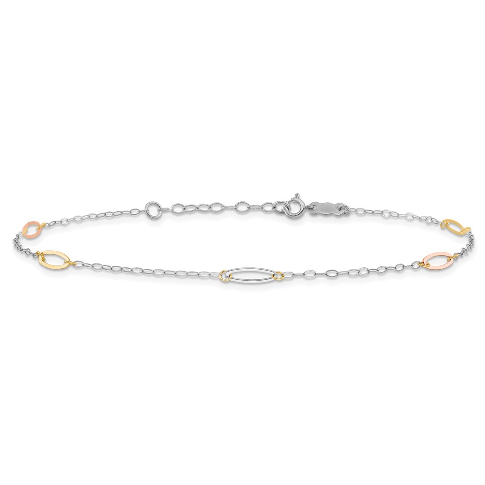 14K Tri-color Oval Link 5-Station Plus Extender – Total Anklet
