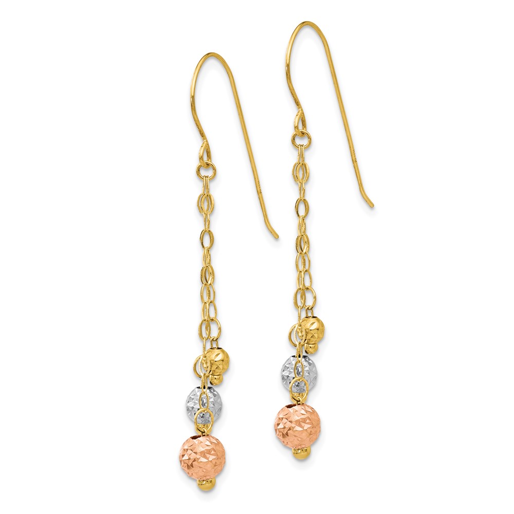 14K Tri-color w/Diamond-cut Beads Dangle Earrings