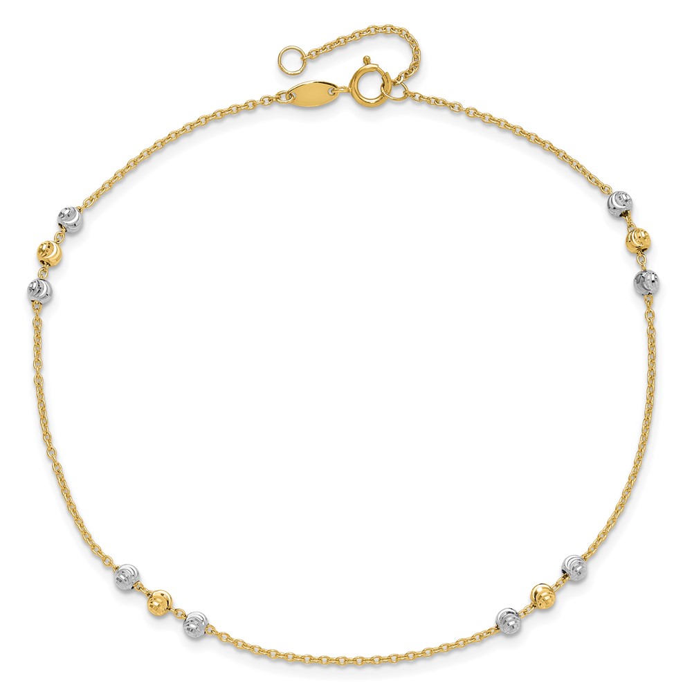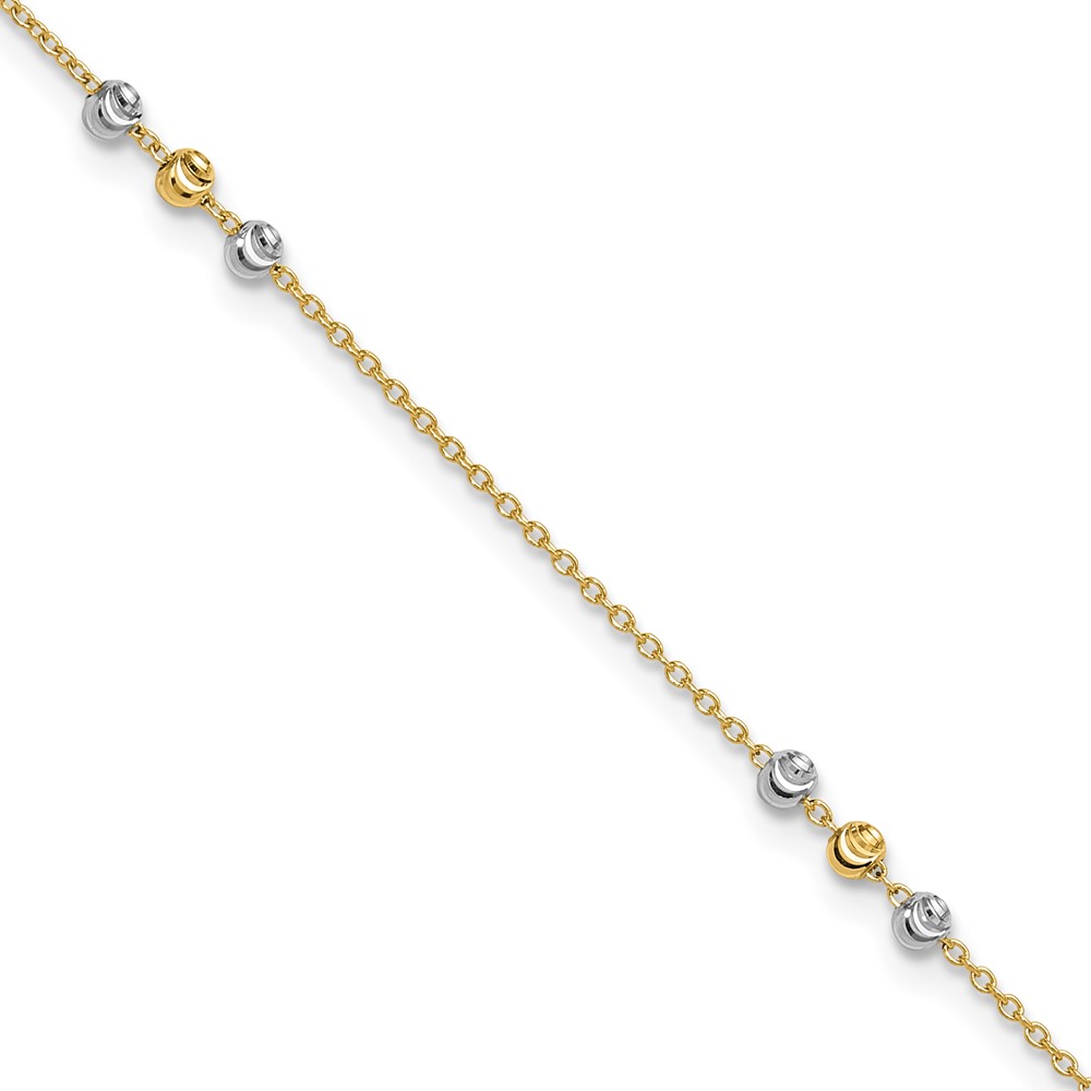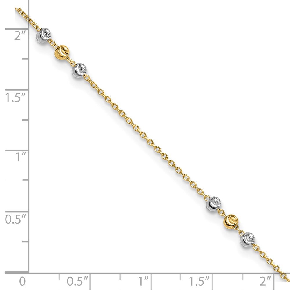 14k Two-tone Circle and Diamond-cut Beads Plus Bead Dangle Extender – Total Anklet