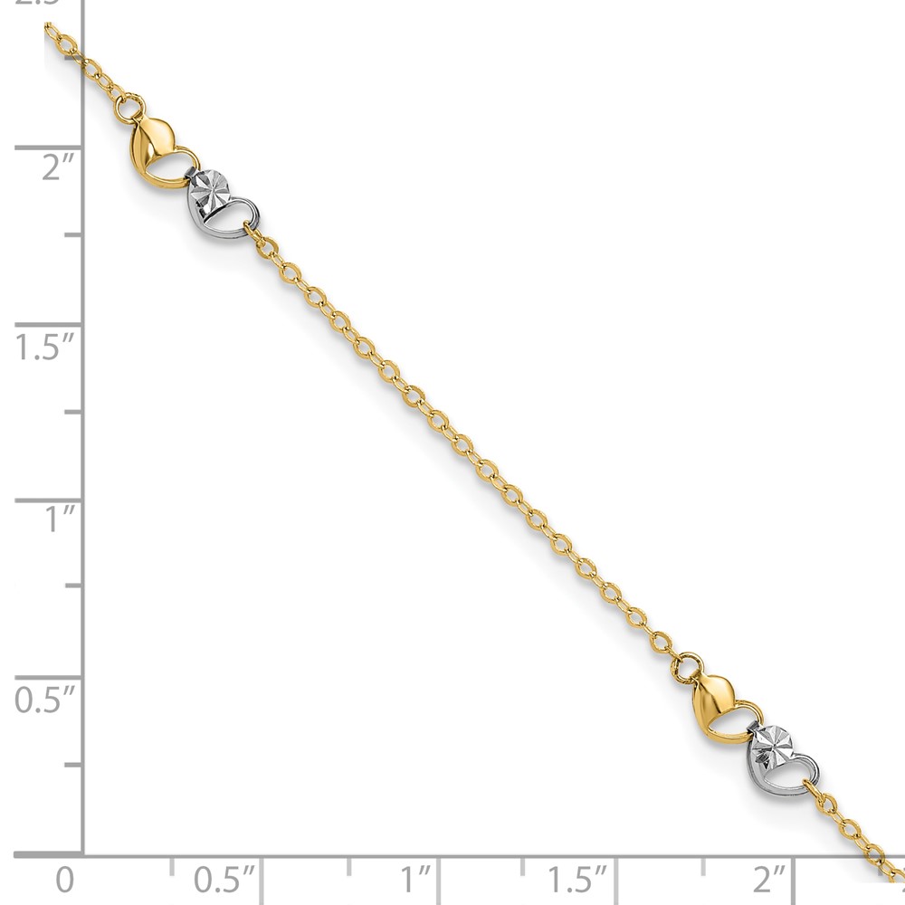 14k Two-tone Diamond-cut Double Hearts 3-Station Plus Extender – Total Anklet