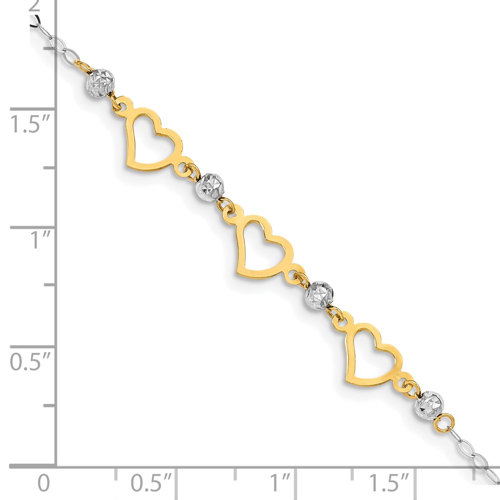 14K Two-tone Hearts and Diamond-cut Beads 6 inch Bracelet