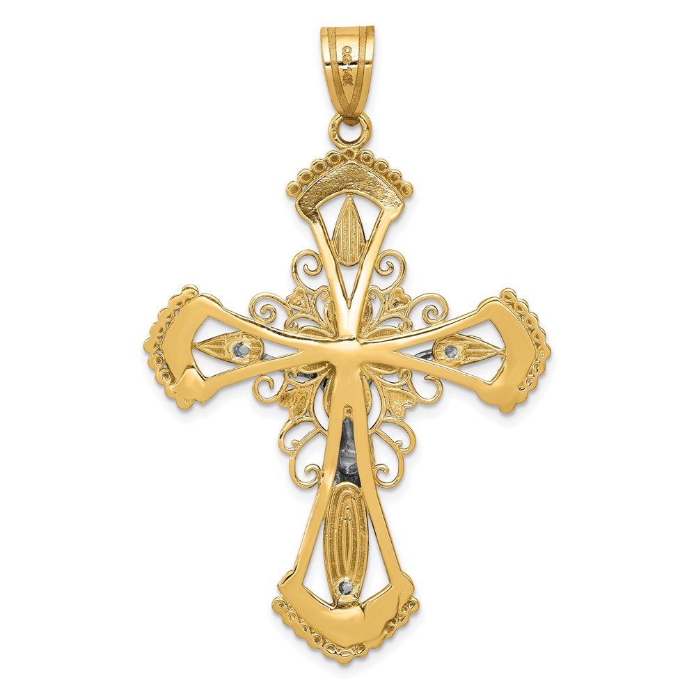 14k Two-tone Diamond-cut Filigree Crucifix Pendant
