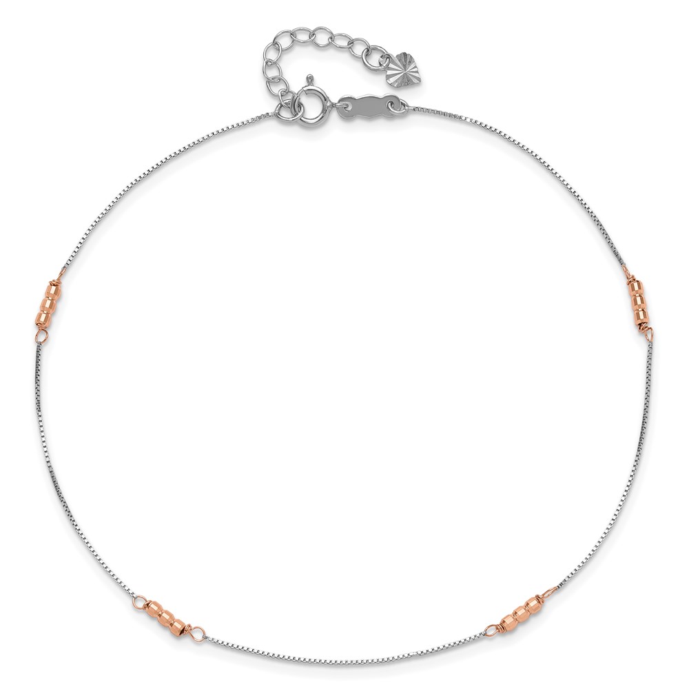 14K Two-Tone Mirror Beaded 4-Station Plus Extender – Total Anklet