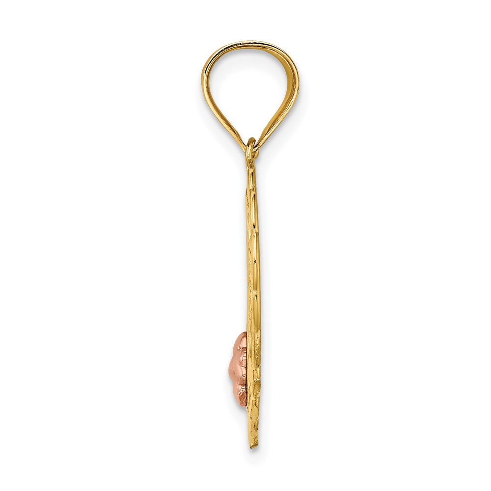 14k Two-tone MOM in Heart Frame with Flower Charm