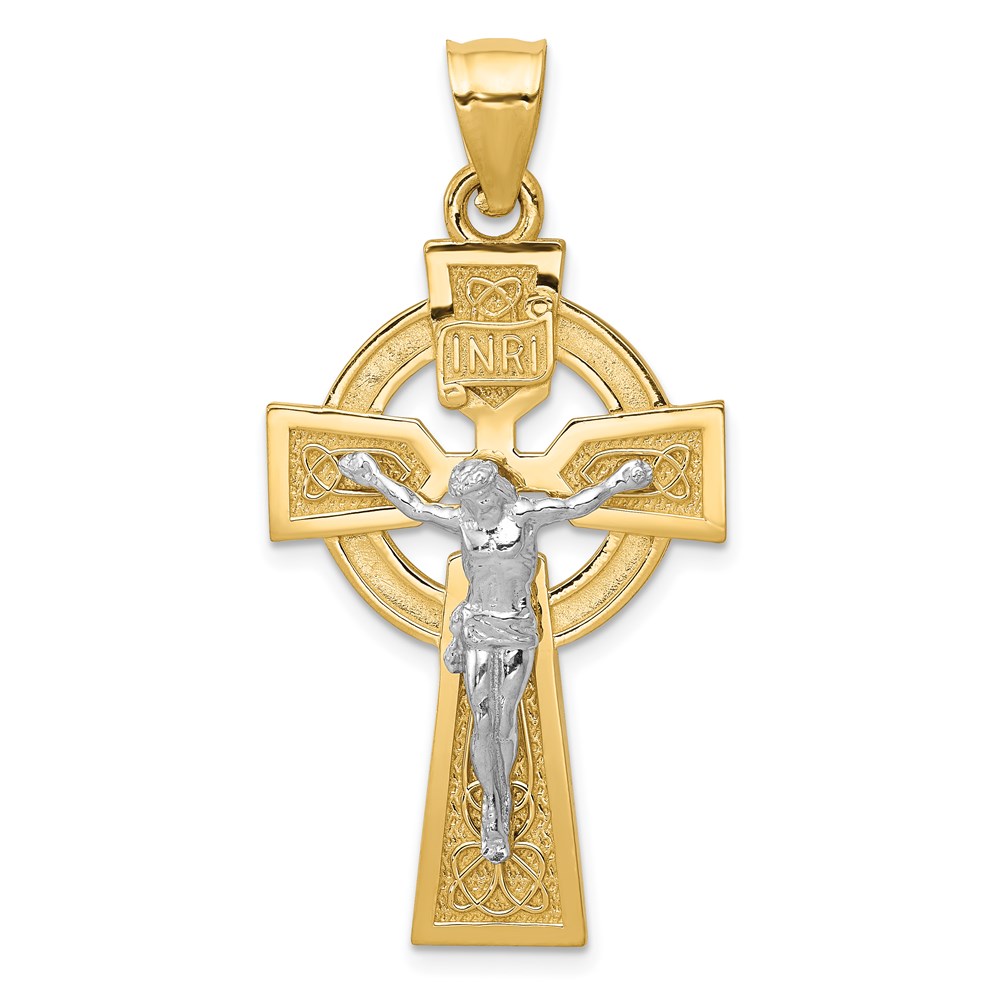 14k Two-tone Polished Celtic INRI Crucifix Pendant