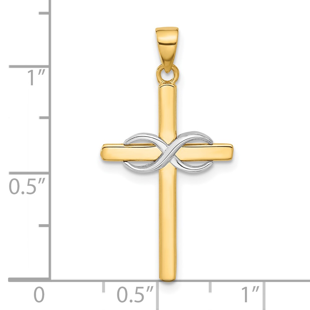 14K Two-tone Polished Infinity Cross Pendant