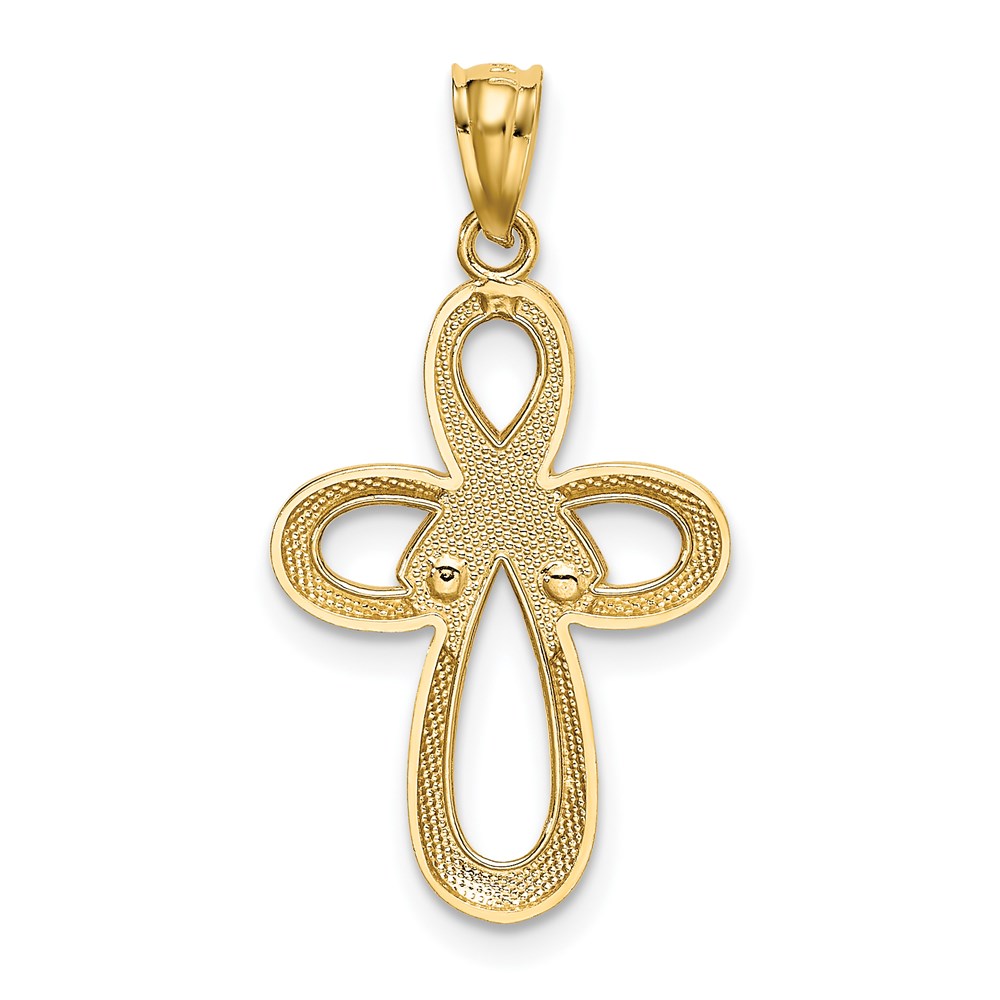 14k White Gold Polished Ribbon Cross Pendant
