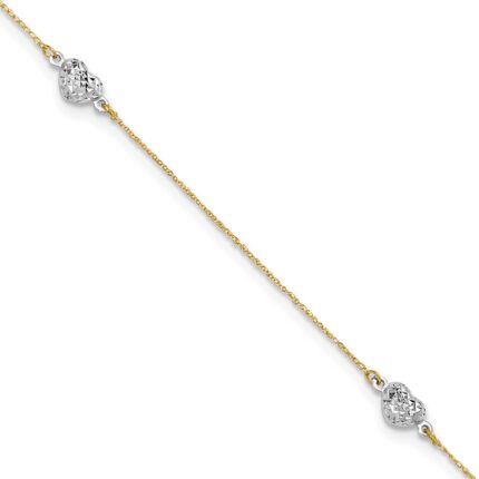 14k Two-tone Diamond-cut Triple Puffed Hearts Plus Extender – Total Anklet