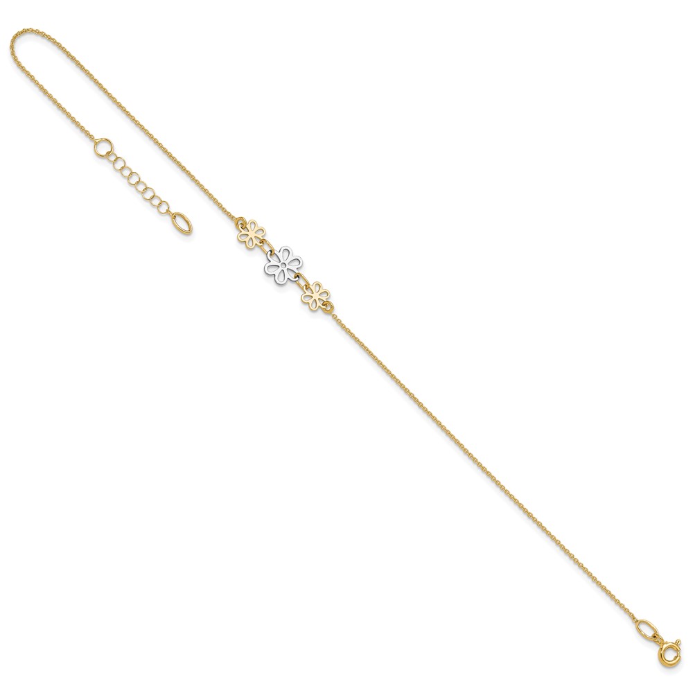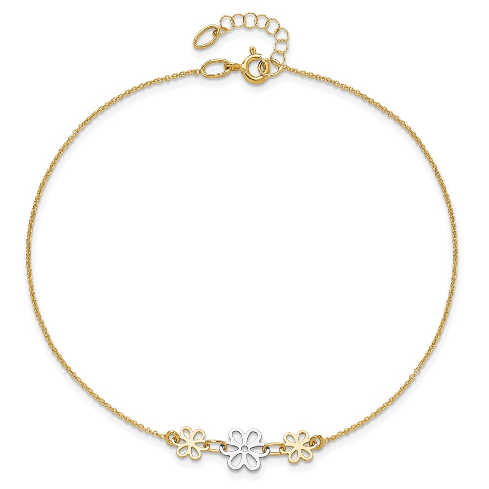 14K Two-tone Polished Three Cut-out Flowers Plus Extender – Total Anklet