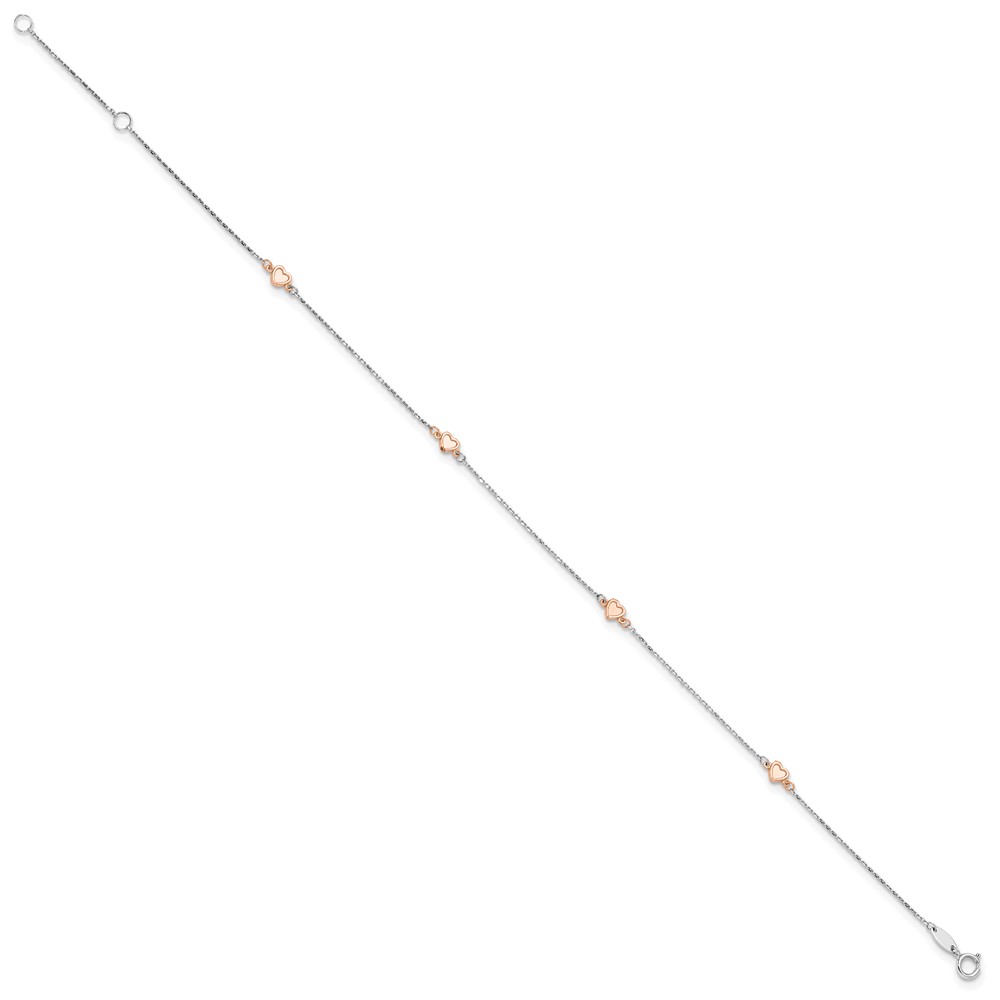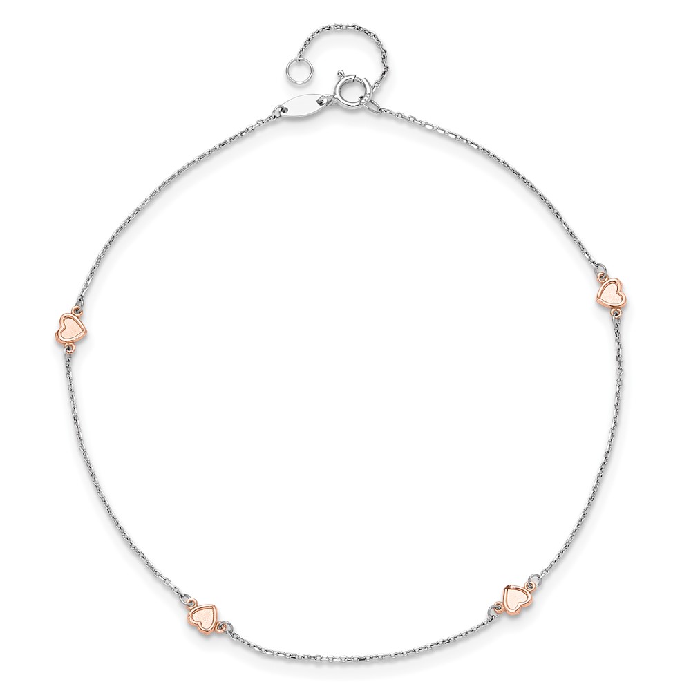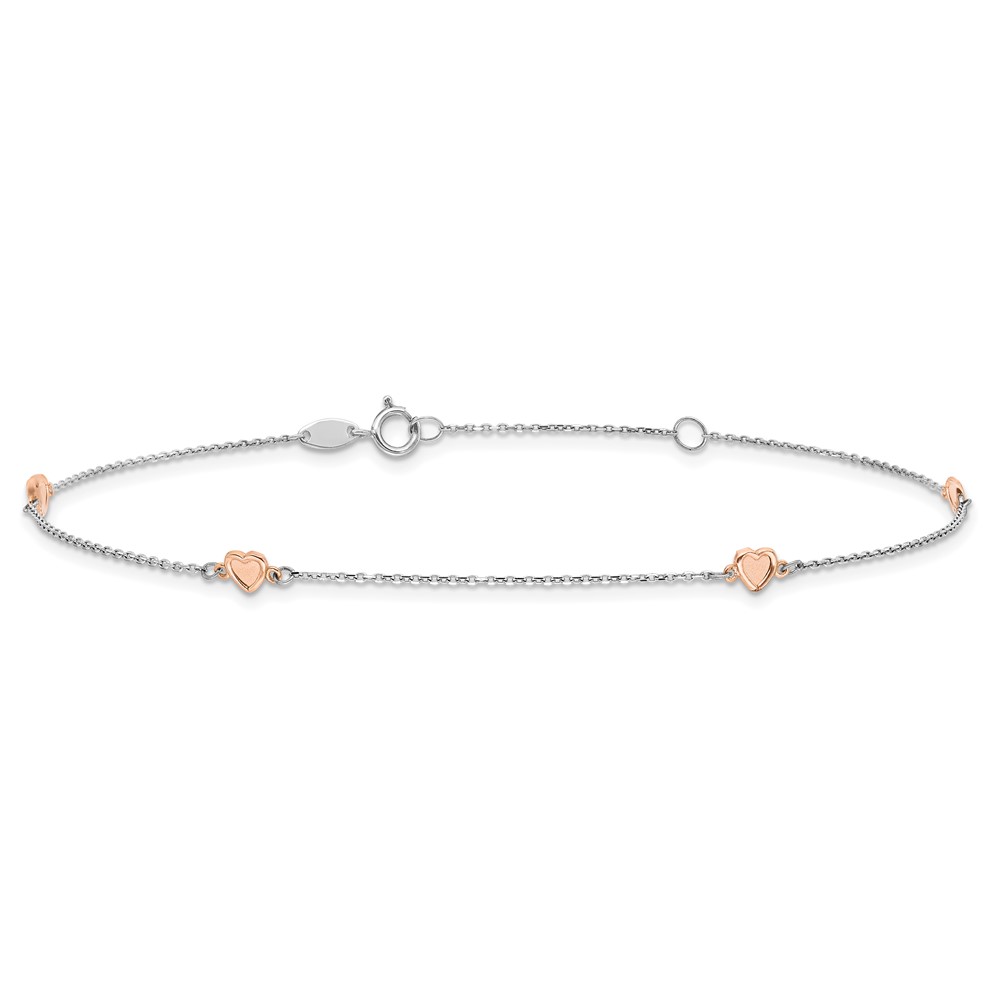 14K Two-tone White and Rose Satin Hearts 4-Station Plus Extender – Total Anklet
