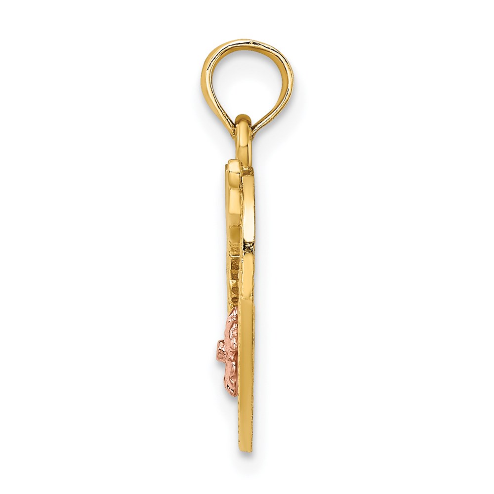 14K Two-Tone Cut-Out Dove On Cross Charm