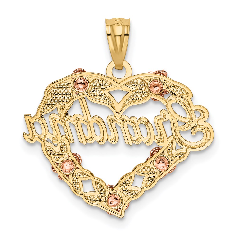 14k Two-tone with White Rhodium GRANDMA Heart with Rose Pendant