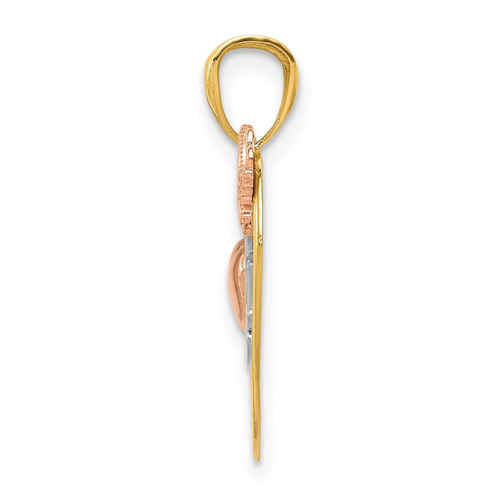 14k Two-tone with White Rhodium I LOVE YOU Heart with Butterfly Pendant