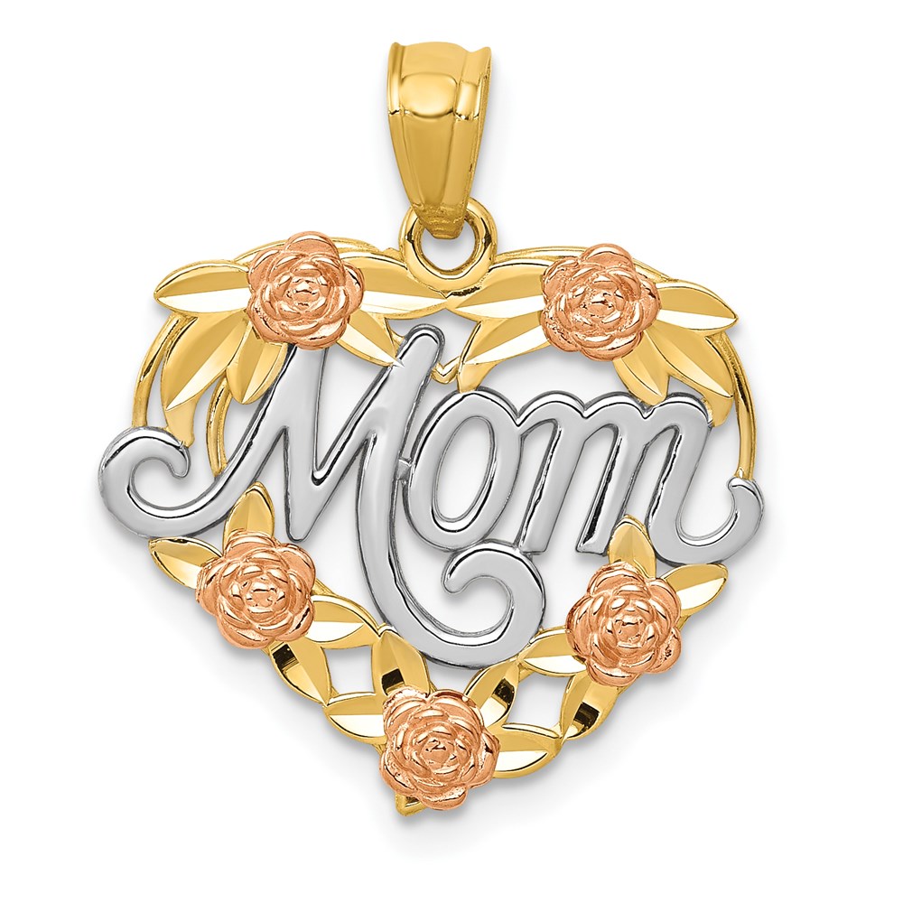 14k Two-tone with White Rhodium MOM Heart Pendant