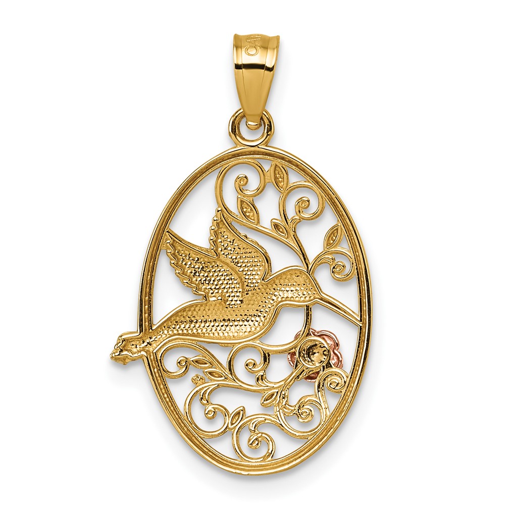 14k Two-tone with White Rhodium Polished Hummingbird and Flower Filigree Pendant