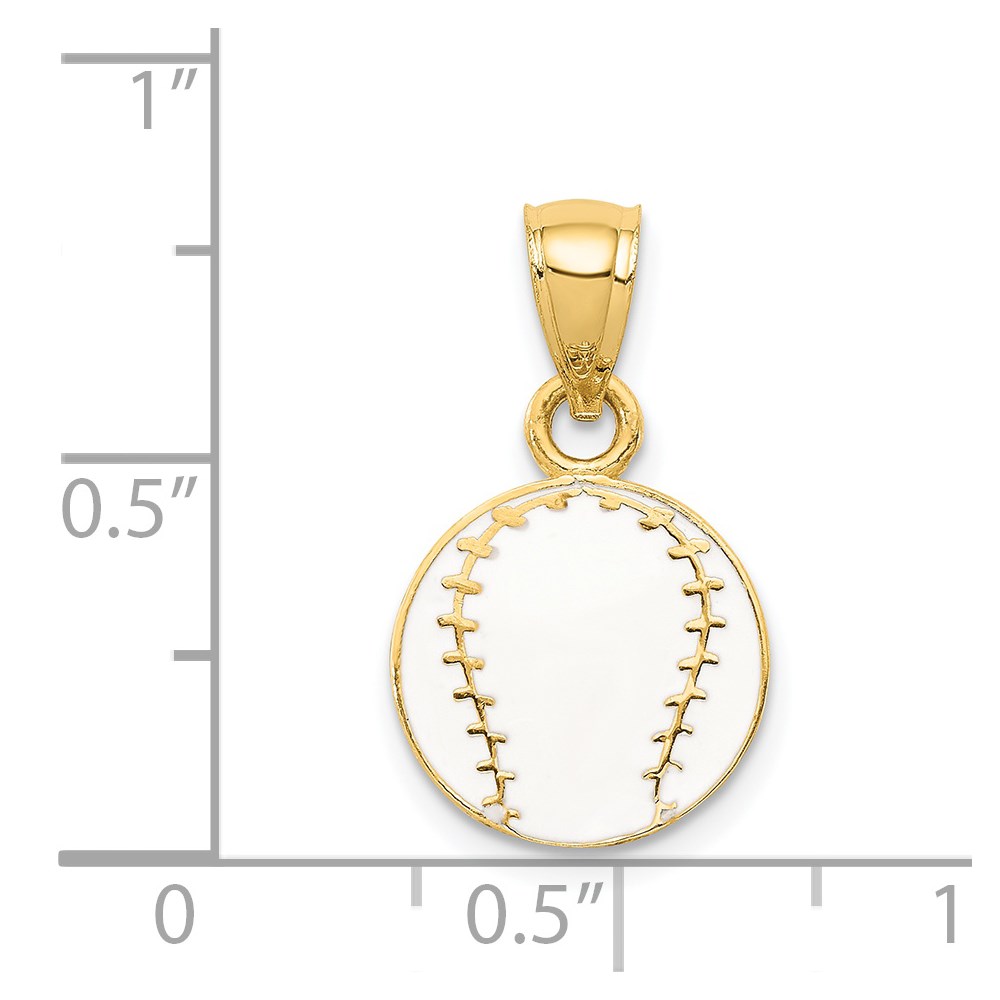 14k White Enameled Baseball Pendant
