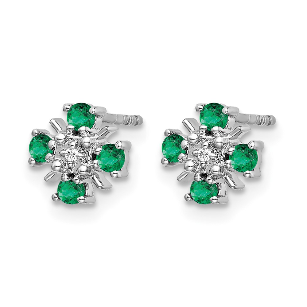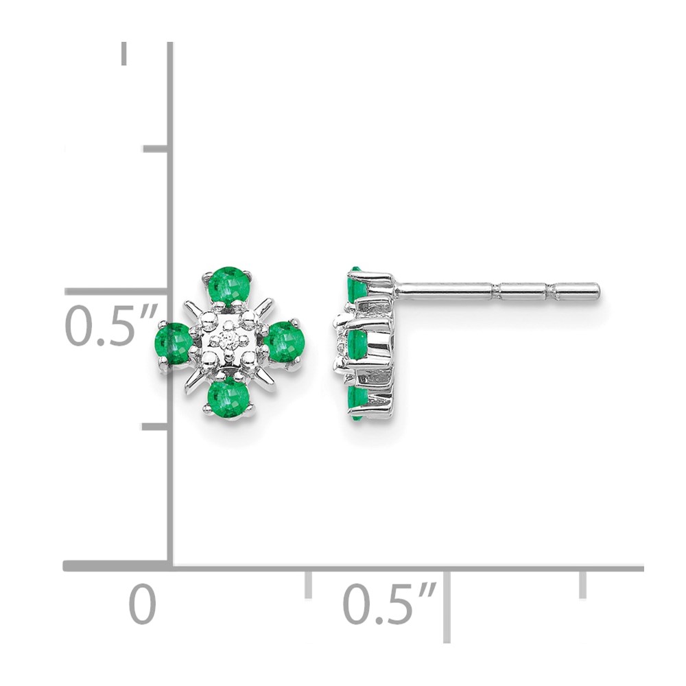 14k White Gold .01 carat Lab Grown Diamond VS/SI+ G+ and Created Emerald Complete Fashion Post Earrings