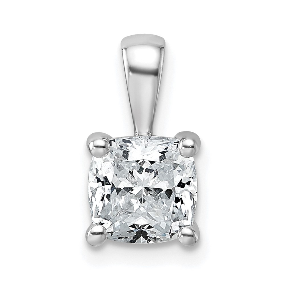 14k White Gold 1 1/2 carat Lab Grown Diamond VS+ F+ Cushion Complete Four Prong Pendant