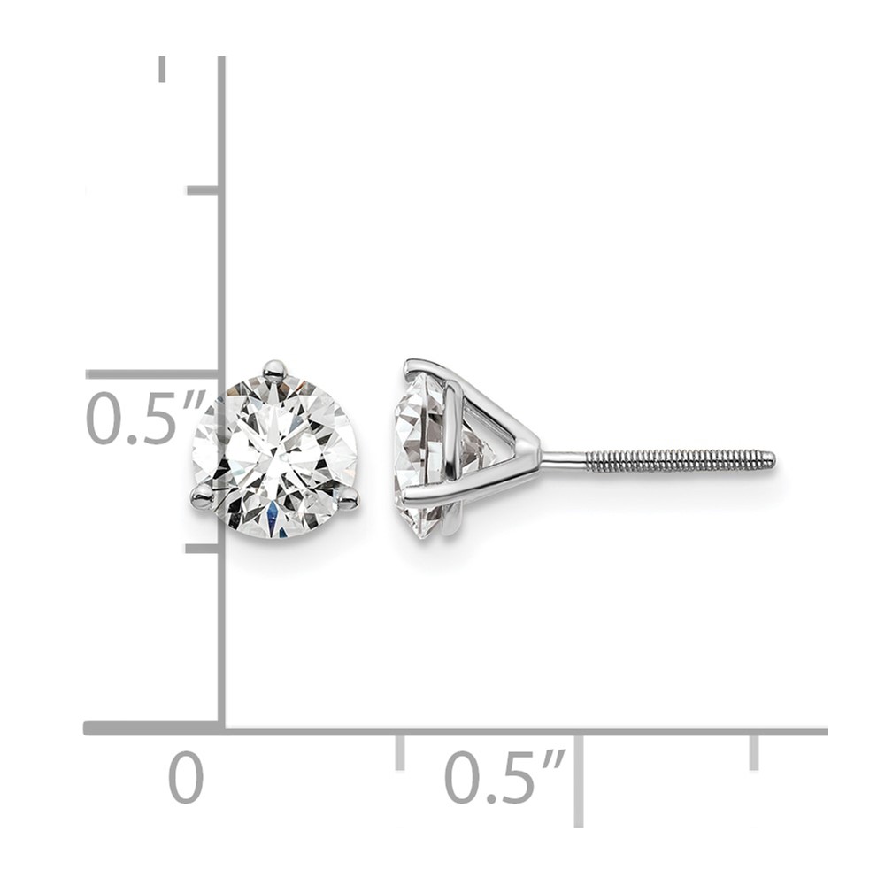 14k White Gold 1 1/2 carat Lab Grown Diamond VS+ F+ Round Complete Three Prong Screwback Stud Earrings