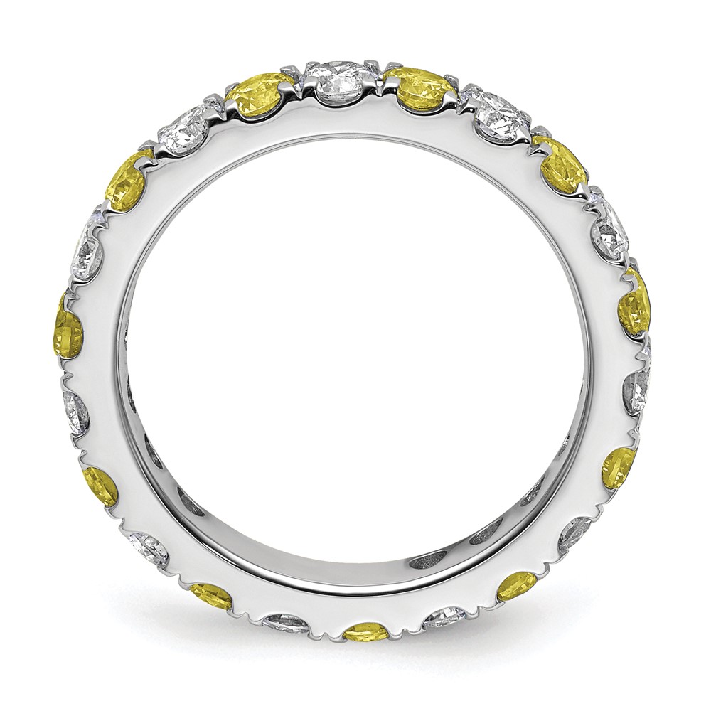 14k White Gold 3/4 carat Lab Grown Diamond VS/SI+ G+ and Lab Created Yellow Sapphire Size 7.5 Eternity Band