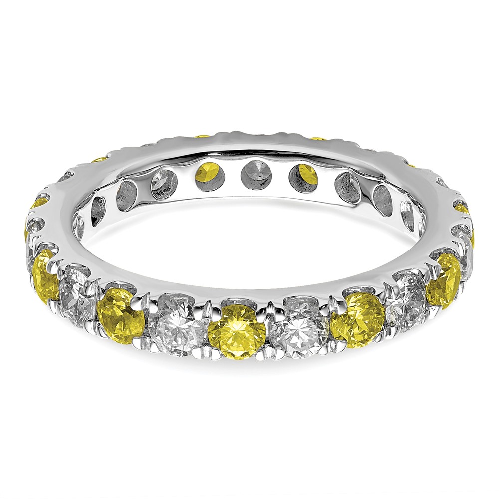 14k White Gold 3/4 carat Lab Grown Diamond VS/SI+ G+ and Lab Created Yellow Sapphire Size 6.5 Eternity Band