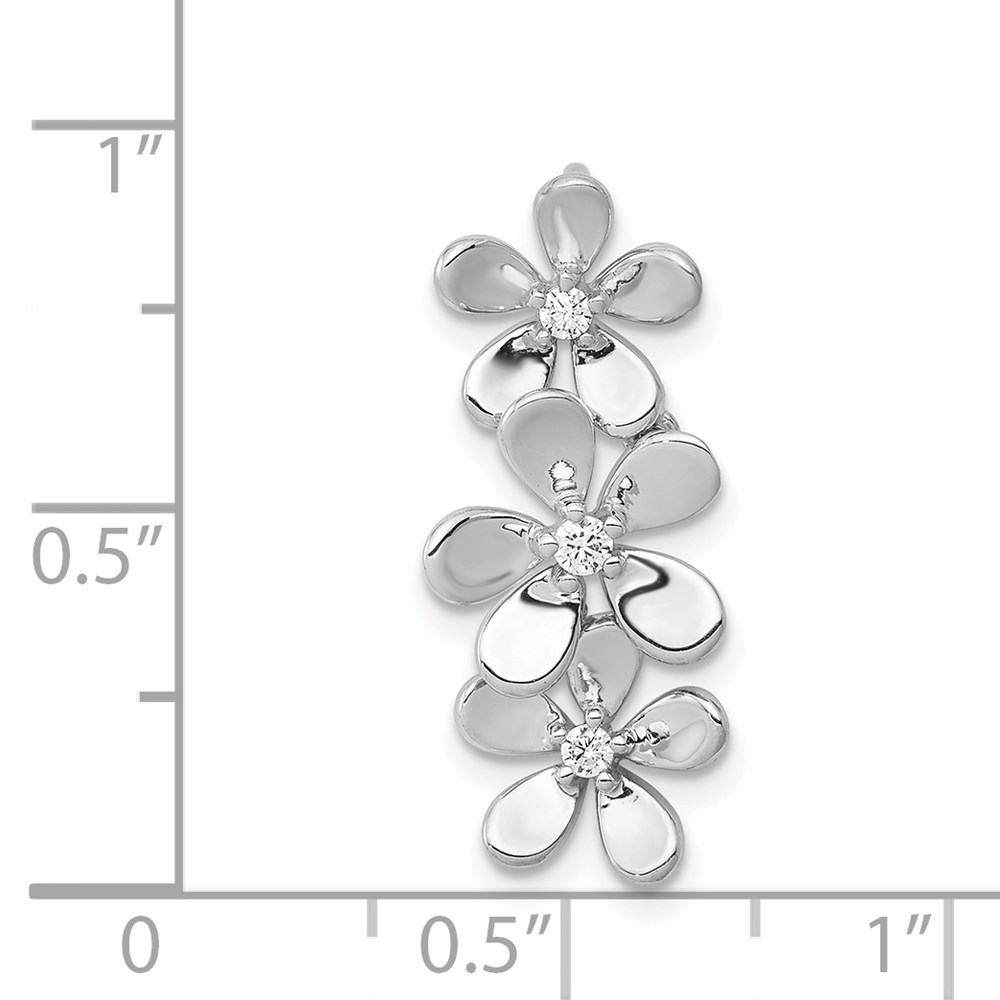 14k White Gold 1/10 carat Diamond Three Flower Chain Slide