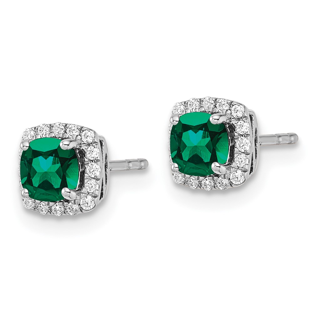 14k White Gold 7mm Cushion Checkerboard May/Lab Created Emerald and Diamond Post Earrings