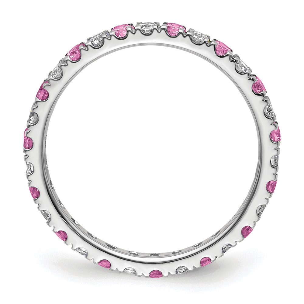 14k White Gold 1/2 carat Lab Grown Diamond VS/SI+ G+ and Lab Created Pink Sapphire Size 6.5 Eternity Band