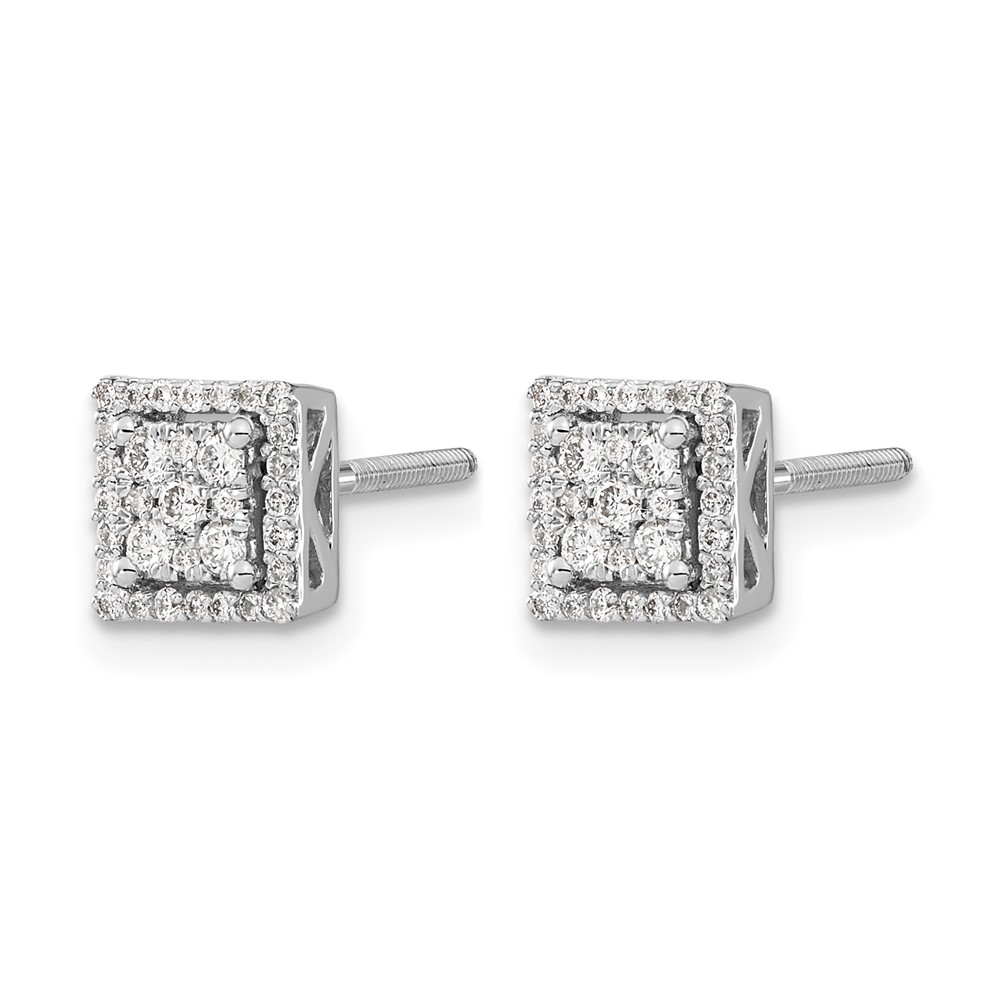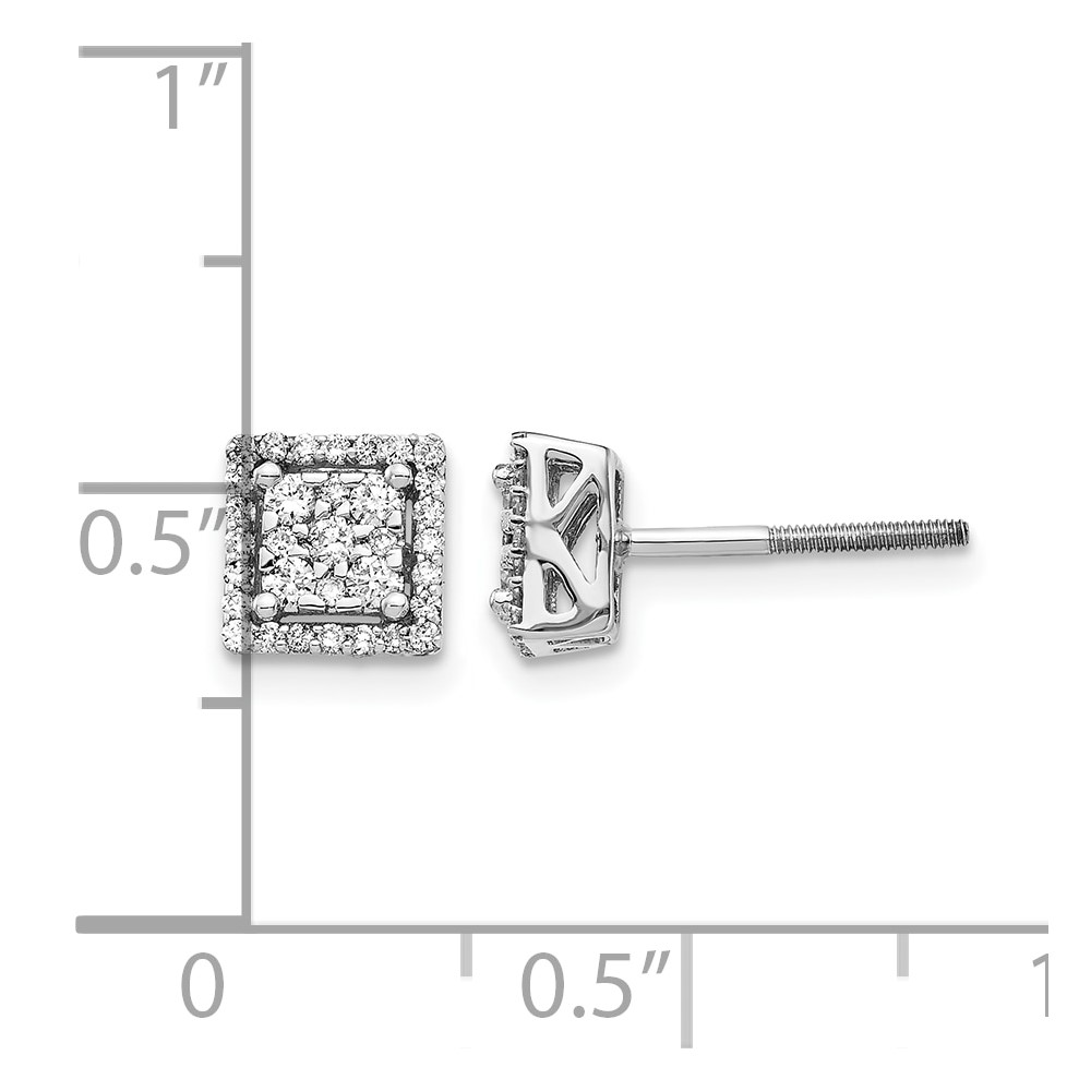 14k White Gold 1/4 carat Diamond Cluster Square Screwback Post Earrings