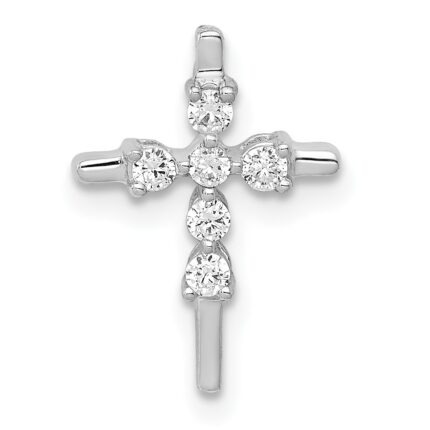 14K White Gold Polished 1/5 carat Diamond Framed Dangle Cross Pendant