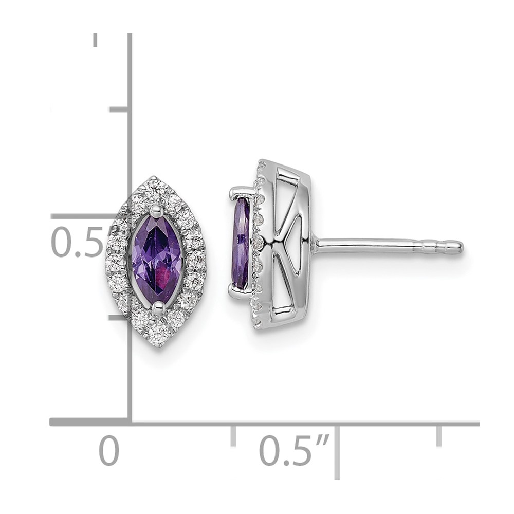 14k White Gold 1/5 carat Lab Grown Diamond VS/SI+ G+ and Amethyst February Birthstone Post Earrings