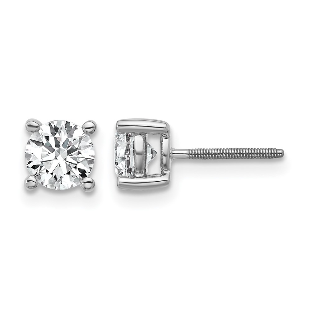 14k White Gold 1 carat Lab Grown Diamond VS+ F+ Round Complete Four Prong Screwback Heavyweight Stud Earrings