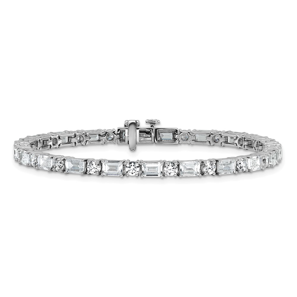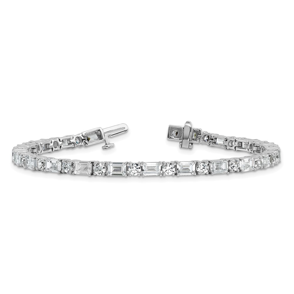 14k White Gold 10 carat Lab Grown Diamond VS/SI+ G+ Complete Emerald and Round Tennis Bracelet