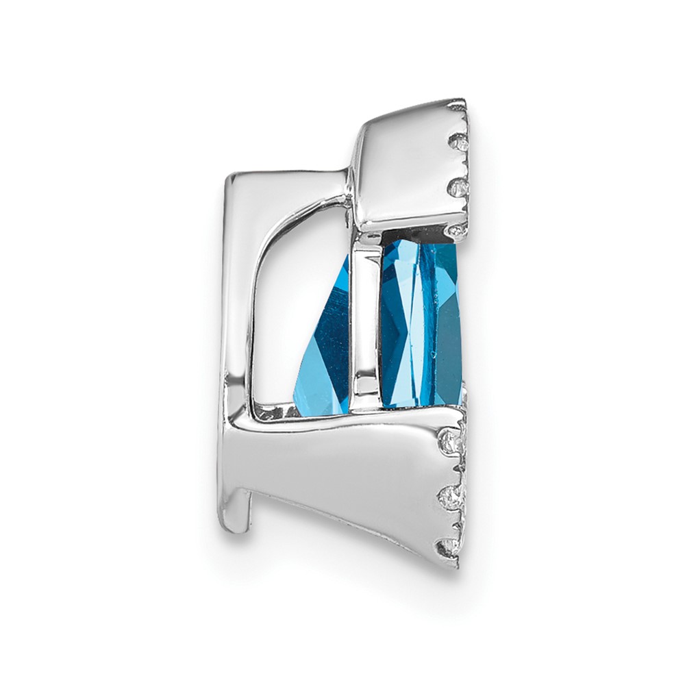 14k White Gold 10x7mm Pear Blue Topaz and Diamond Chain Slide