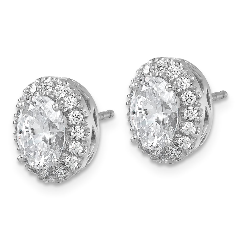 14k White Gold 2 1/2 carat Certified Lab Grown Diamond VS/SI+ G+ Oval Complete Halo Post Earrings