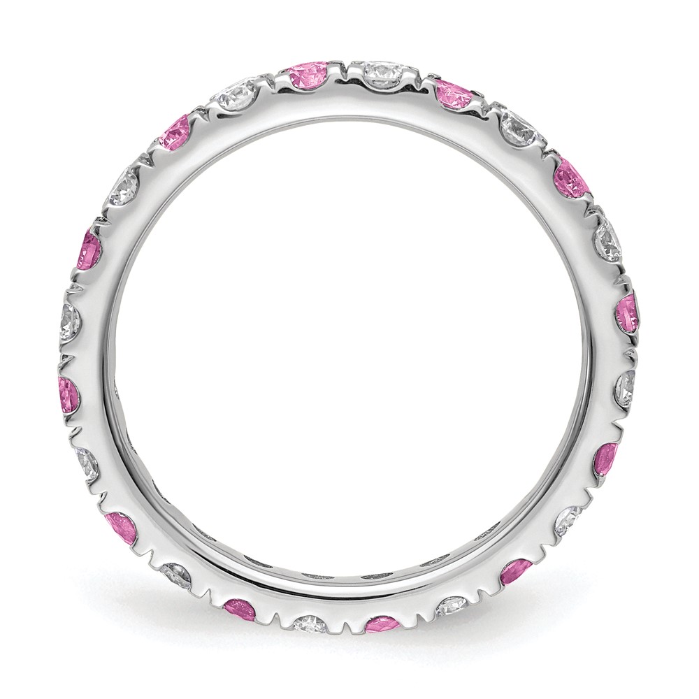 14k White Gold 3/4 carat Lab Grown Diamond VS/SI+ G+ and Lab Created Pink Sapphire Size 7.5 Eternity Band