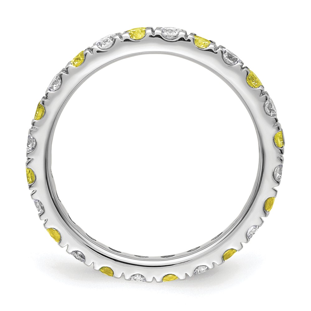 14k White Gold 3/8 carat Lab Grown Diamond VS/SI+ G+ and Lab Created Yellow Sapphire Size 5 Eternity Band
