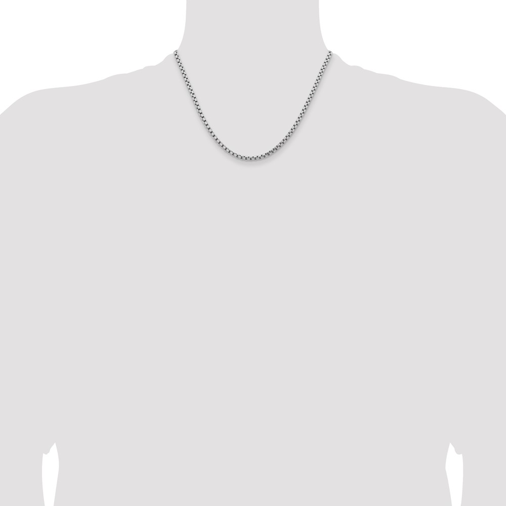 14K White Gold 3.6mm Semi-Solid Round Box with Lobster Clasp Chain